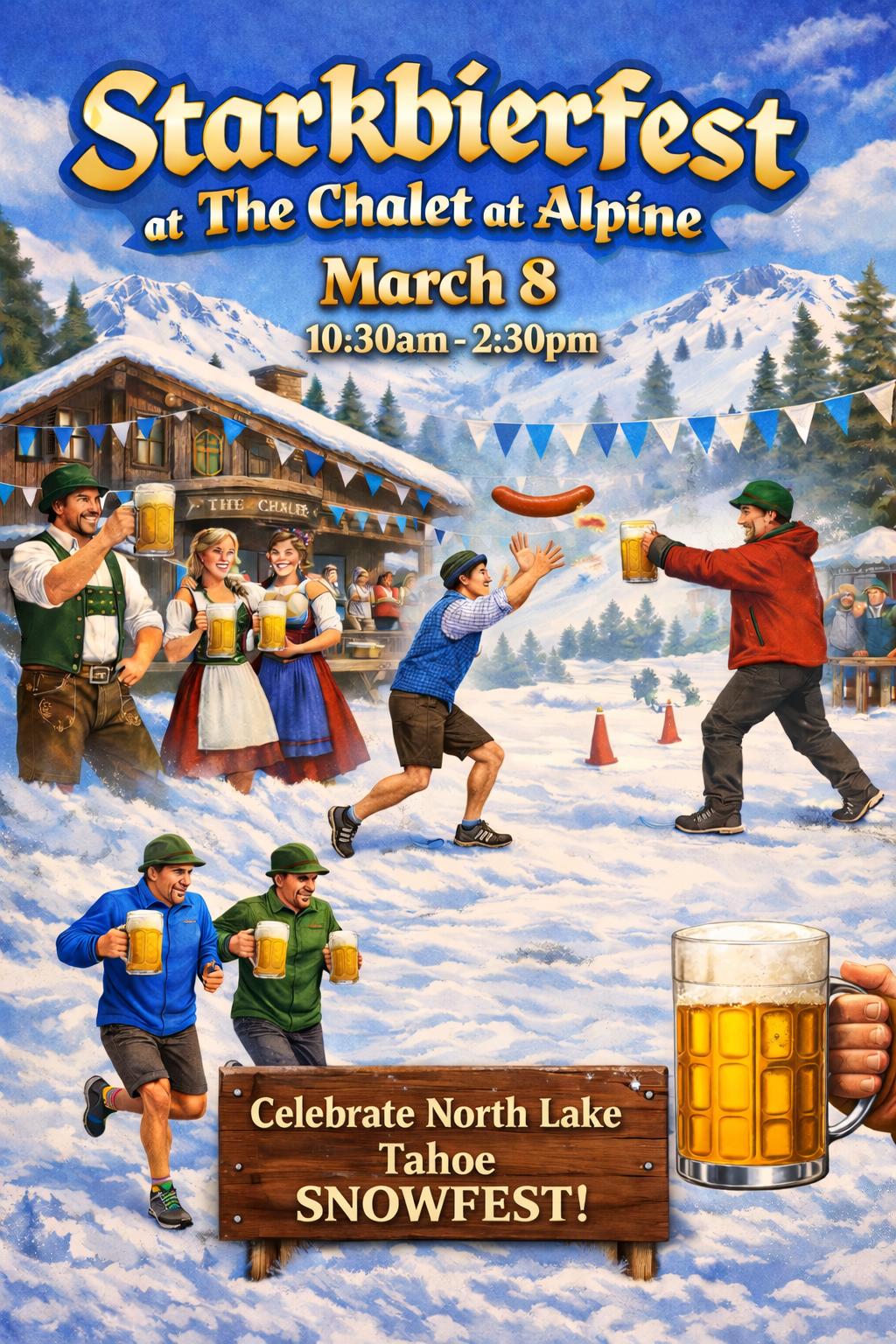 Celebrate North Lake Tahoe SNOWFEST and strong beer at Starkbierfest, a lively Bavarian tradition brought to life at The Chalet at Alpine at Palisades Tahoe.